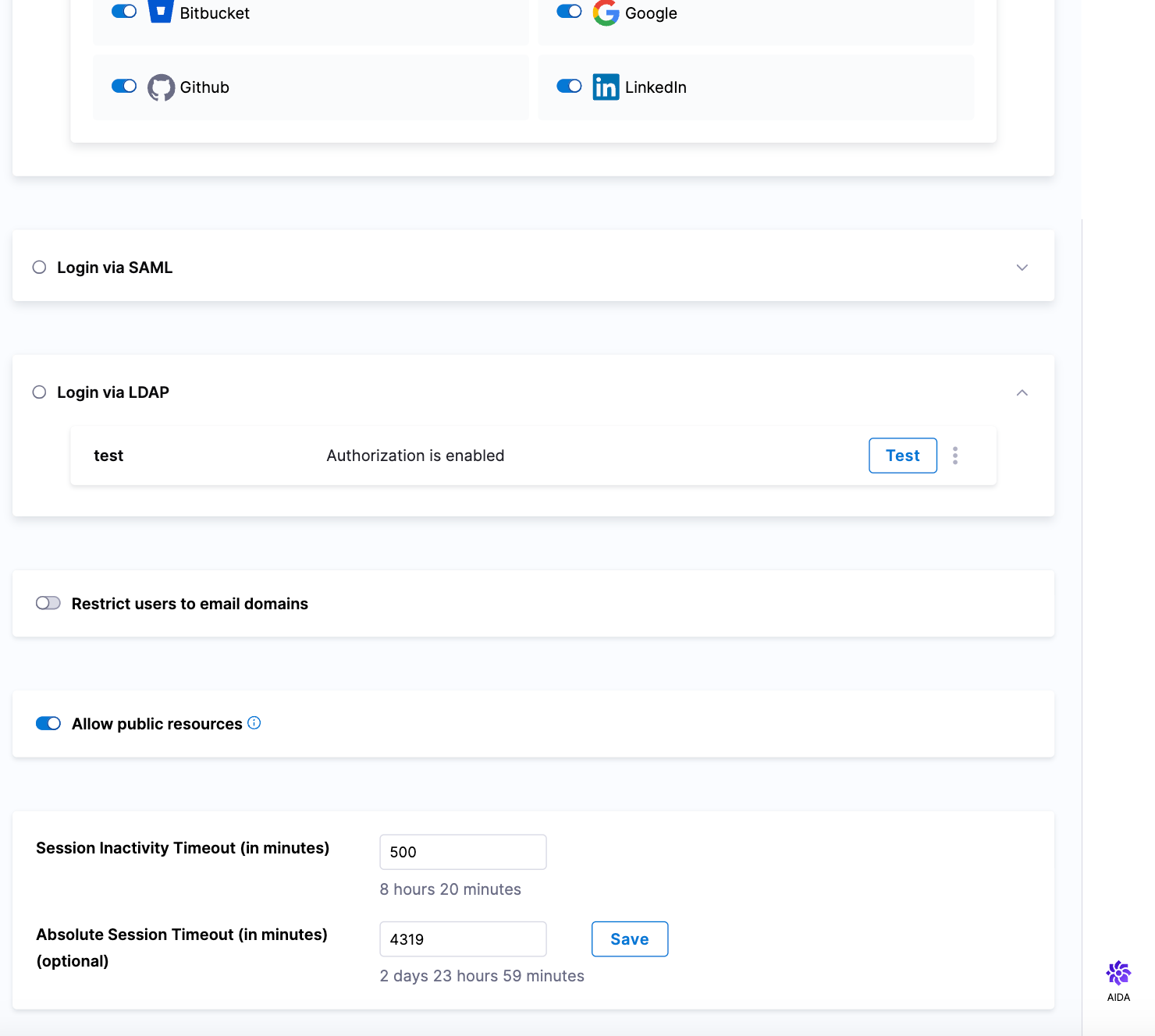 - New configurable Session timeout available: A new Absolute Session Timeout (in minutes) setting is available on the Authentication page. When the Absolute Session Timeout (in minutes) is set, users will be logged out of their account after the configured timeout, regardless of any activity.