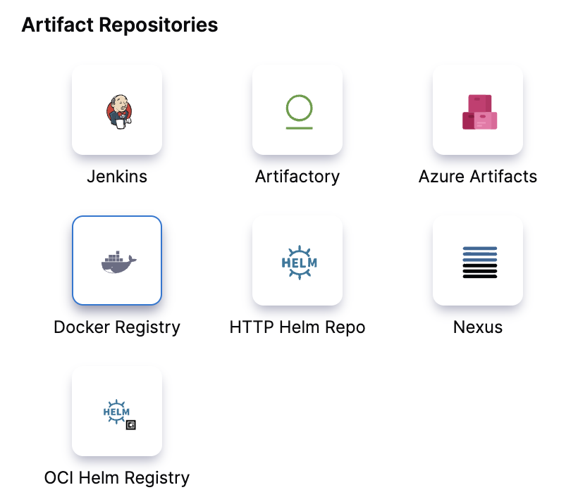 - Container Registry Connections - DockerHub, JFrog Artifactory, Sonatype Nexus, etc