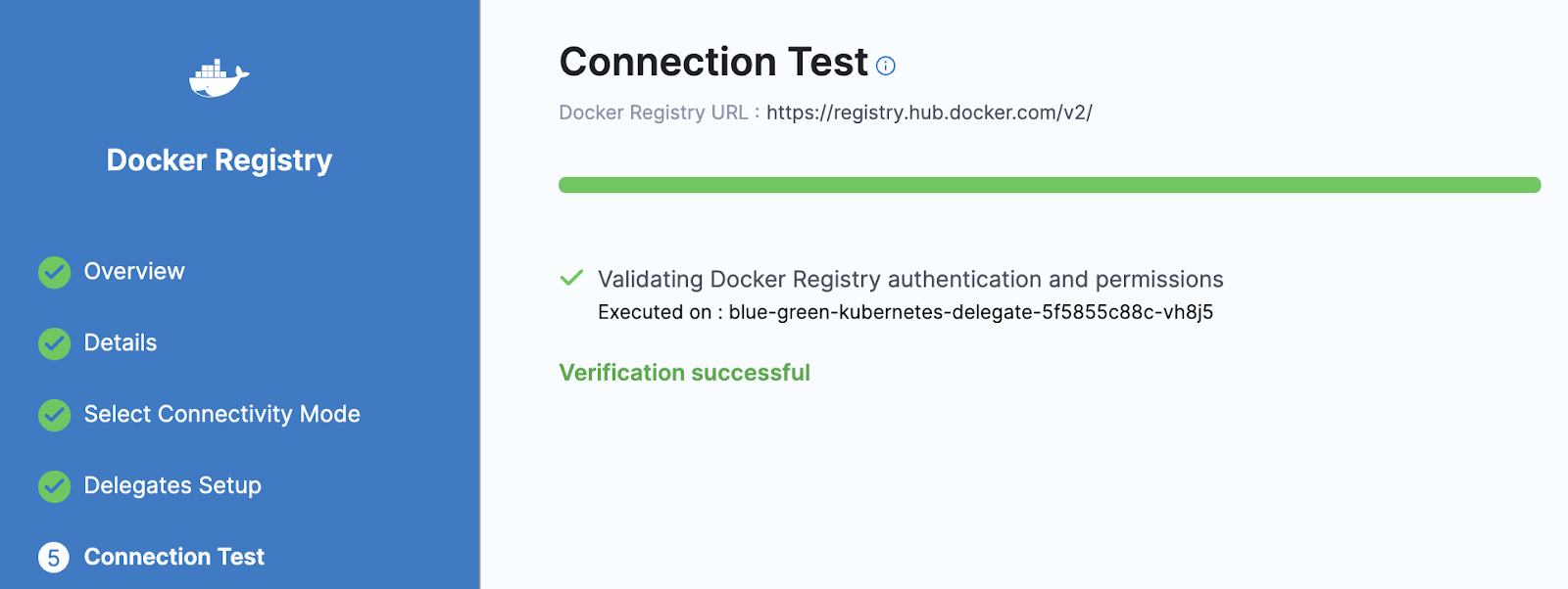 You need to make sure that the connection between your Docker Hub and Delegate is successful.