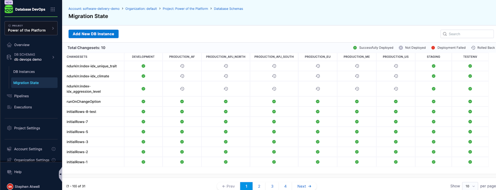 Due to the manual processes surrounding database migration, many organizations lack visibility into which database changes have been deployed to which environments. Sometimes, environments are missed, leading to unexpected problems and downtime. Harness Database DevOps addresses this challenge by providing a unified environment overview that offers clear insights into the state of database changes across all environments.