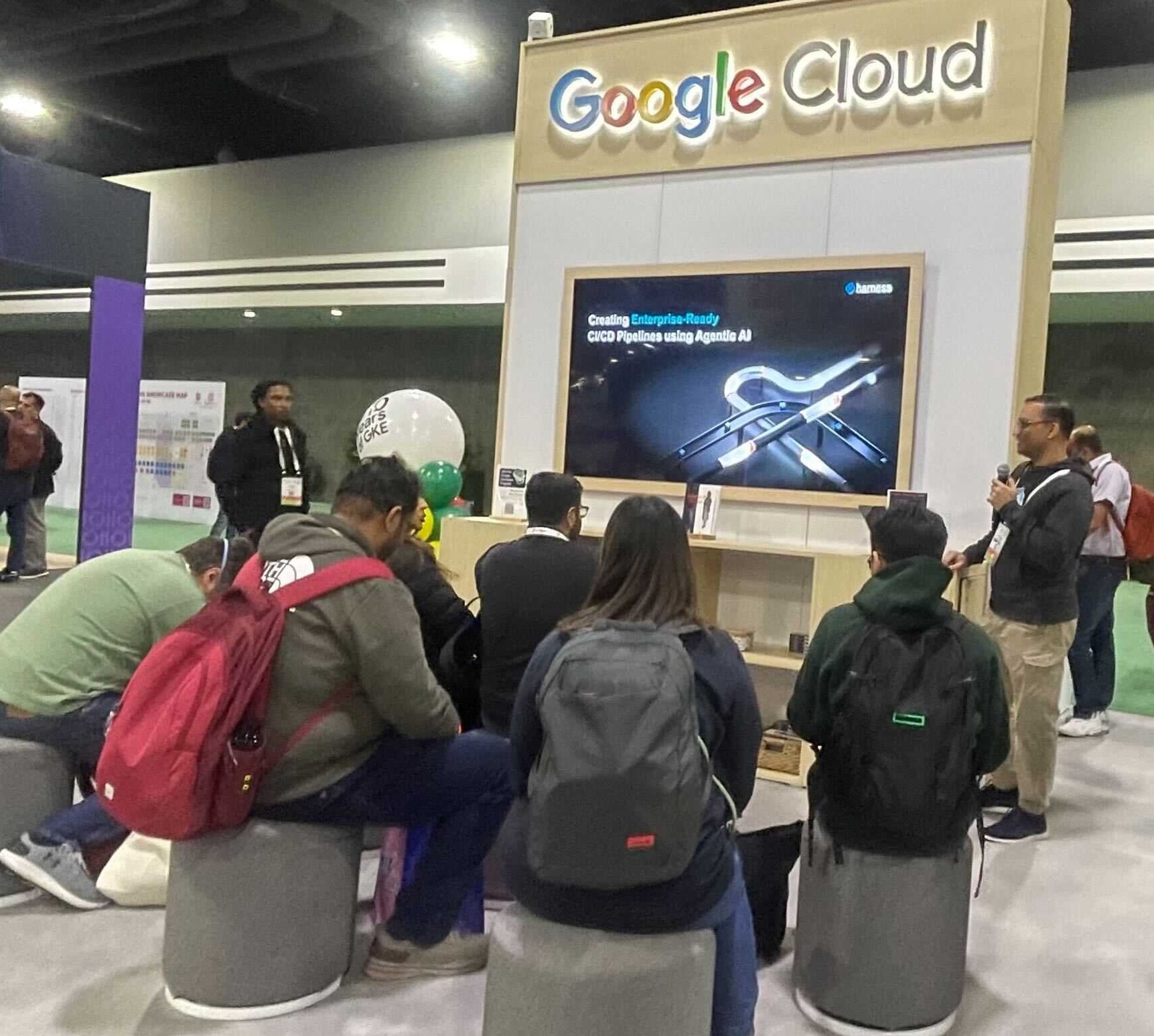 At the Google Cloud Booth, Chinmay Gaikwad, Harness’s Director of Product Marketing, presented “Creating Enterprise-ready CI/CD Using Agentic AI,” demonstrating how AI is making continuous delivery faster and more secure at enterprise scale. Harness’s extensive knowledge graph caught the attention of the audience.
