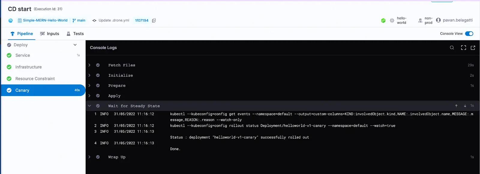 Once the configuration is set up, you can apply changes and run the pipeline. You should see the canary deployment strategy getting executed as you have specified.