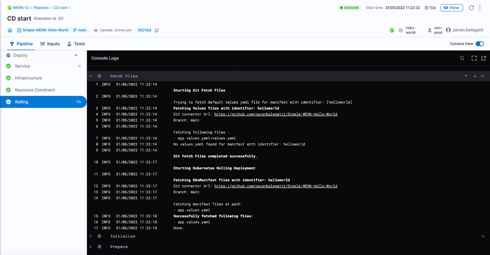 Once the configuration is set up, you can apply changes and run the pipeline, you should see the rolling deployment strategy getting executed as you have specified it.