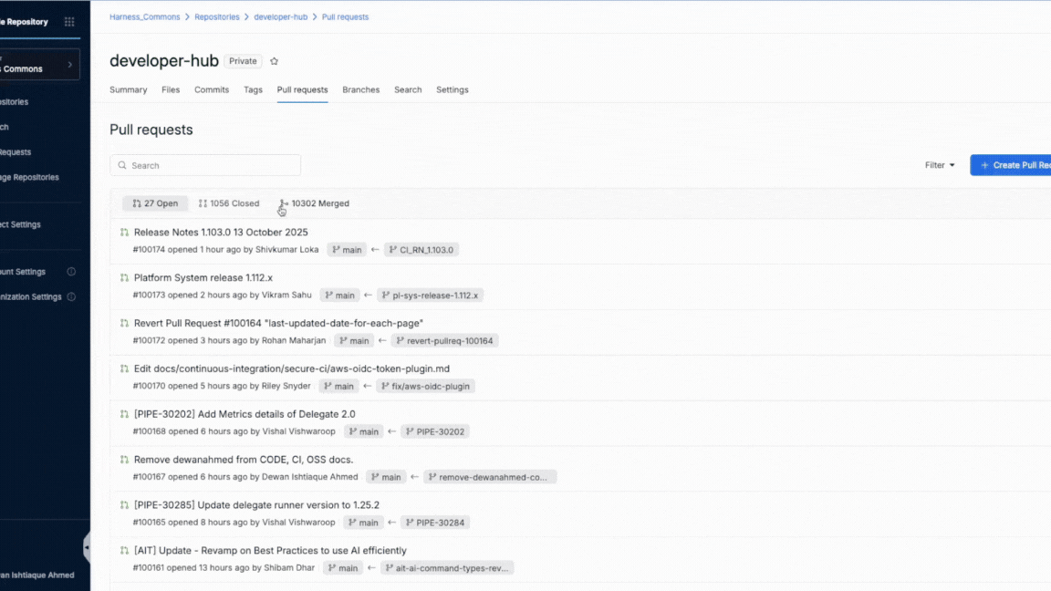 Smarter PR Reviews: Inline comments, keyboard shortcuts, and faster diffs reduce context switching. Optimized for Scale: Instant file tree and change listing performance even in large monorepos. Seamless Navigation: Effortlessly move between branches, commits, and repos without losing context. Unified Design System: A consistent, intuitive UI across the entire Harness platform.