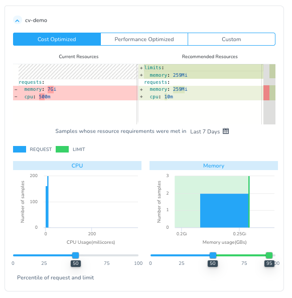 By adjusting the utilization sampling, you’re able to tune a recommendation to lean more heavily into a cost-optimized workload, or a performance-optimized workload. In this way, you’re not just trusting a rightsizing recommendation, you’re defining yourself what data goes into the recommendation and saving time and effort doing data validation and proposing alternative recommendations.