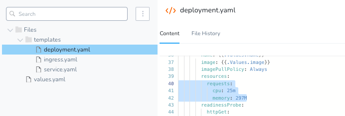 With the Recommendations returned, simply tuning the workload’s resource limits and requests can be achieved with Harness. We have a detailed blog outlying the steps of implementing cloud cost savings. Though would be as simply modifying the manifests with the updated resource limits/requests and redeploying via Harness.