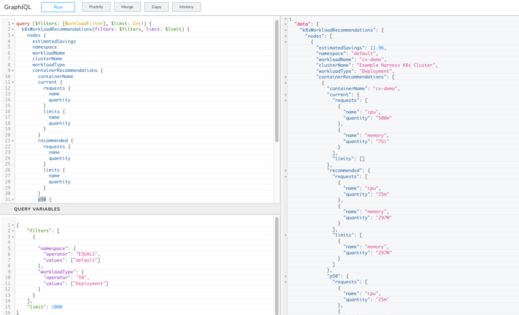 With the introduction of the Recommendations API, there are now programmatic ways to gather the insights and recommendations that Harness CCM provides. With a GraphQL query, you can retrieve the results of every Kubernetes cluster CCM is observing.