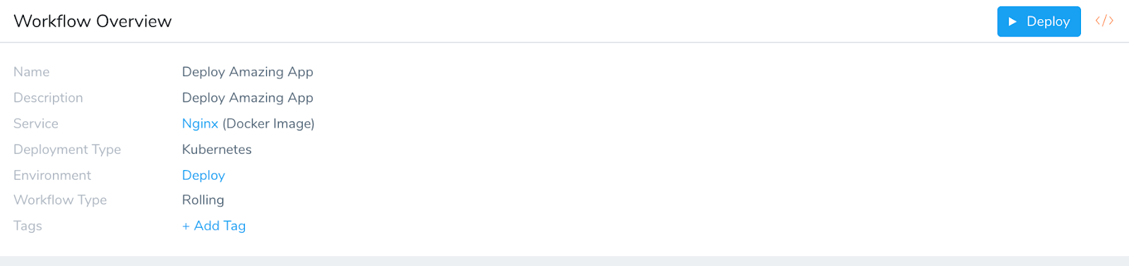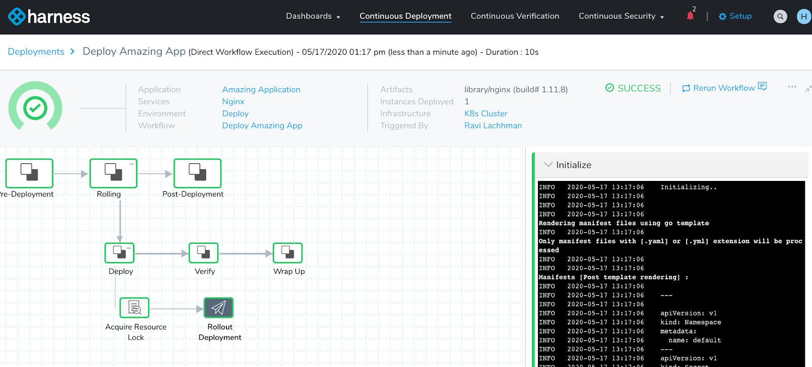 With that wiring out of the way, you can navigate to Harness Workflow and add a Notification Strategy. I have a simple Kubernetes deployment which I am using for the example.