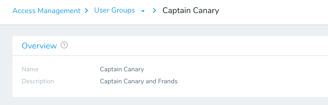 You can leverage an existing User Group or create a new one. Here I have created a new User Group called “Captain Canary”.