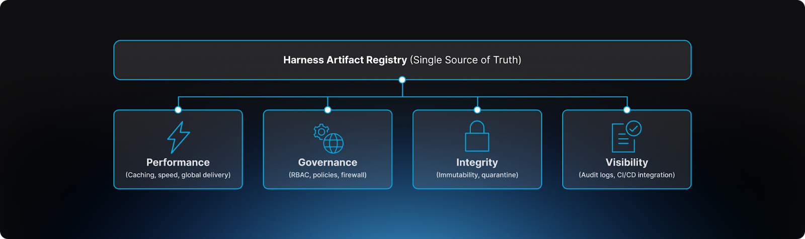 Harness Artifact Registry transforms governance from a bottleneck into an enabler through registry-native controls that enforce policy at the artifact boundary—before dependencies enter builds, before vulnerable images reach production, before compliance violations propagate downstream.