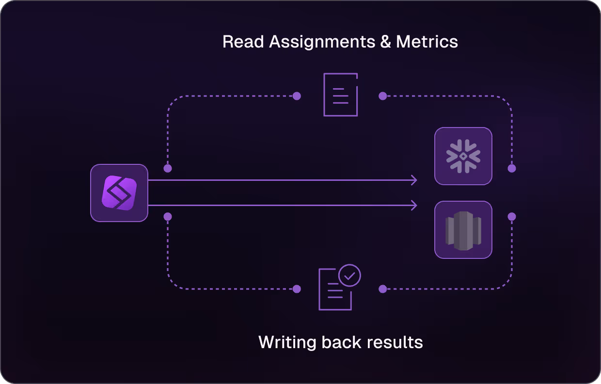 Warehouse-Native Experimentation integrates with Snowflake and Amazon Redshift so you can analyze assignments and events directly in your data warehouse.