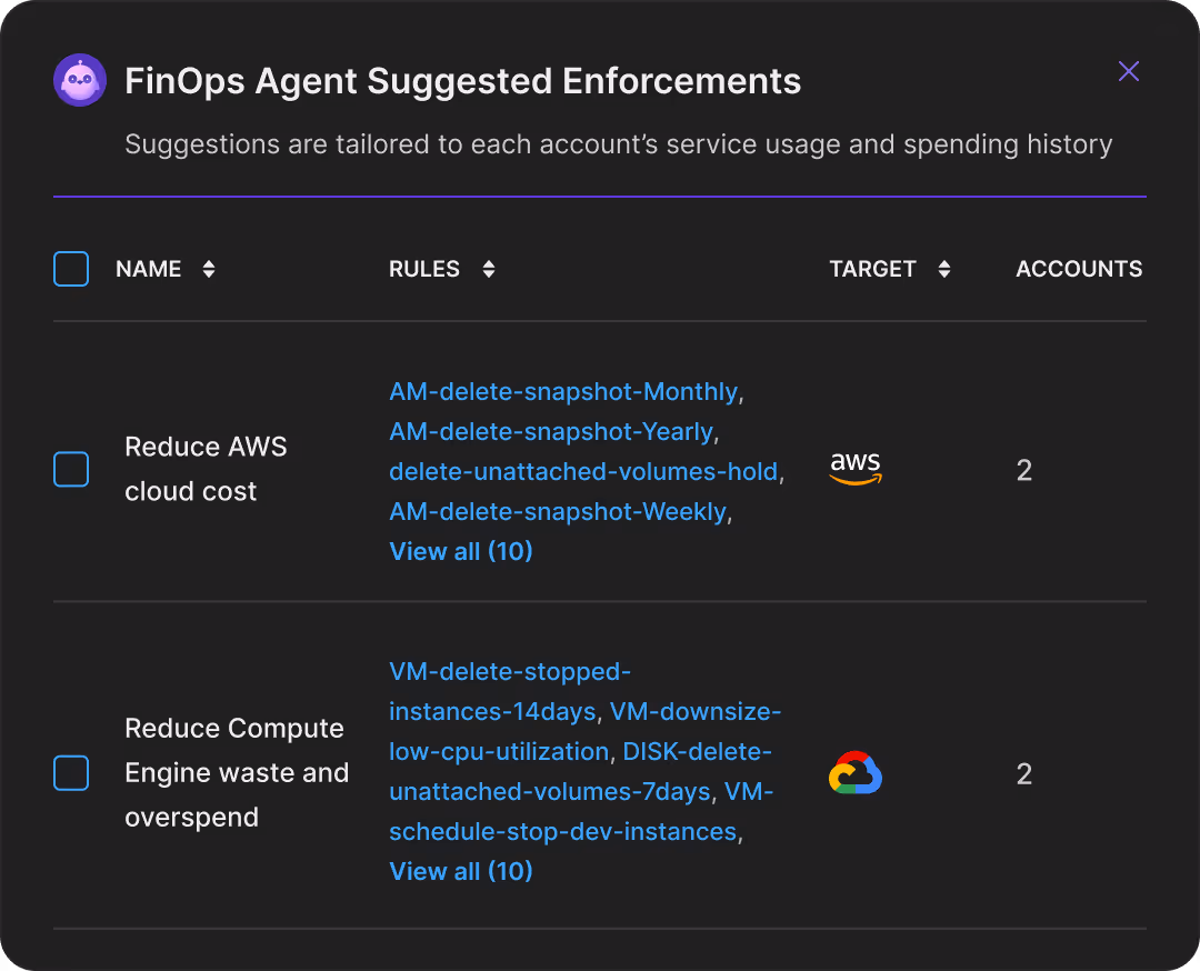Get smart recommendations, create dashboards, and derive insightful summaries around your cloud costs using the AI FinOps Agent.