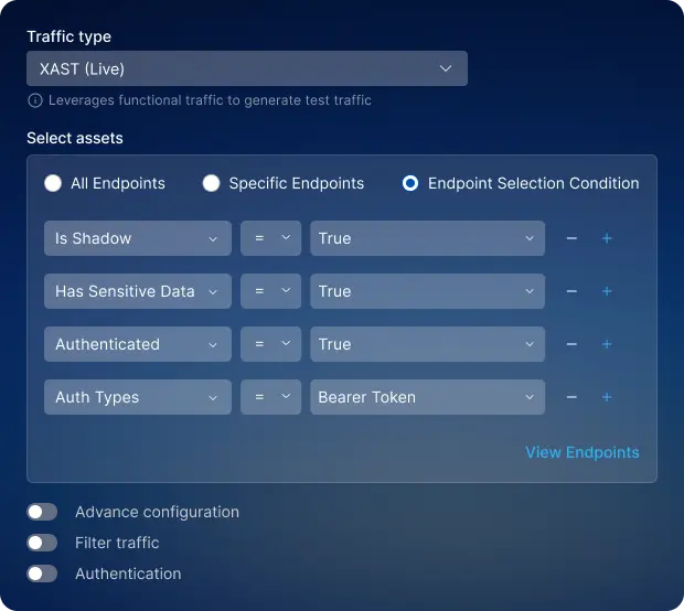 Create security tests automatically from actual traffic and constrain tests to actively used APIs to reduce vulnerability overload.