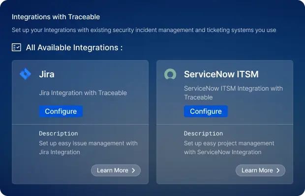 Integrate testing within Harness pipelines, CI/CD services, or project management tools like Jira and ServiceNow so security scanning is continuous throughout the SDLC.